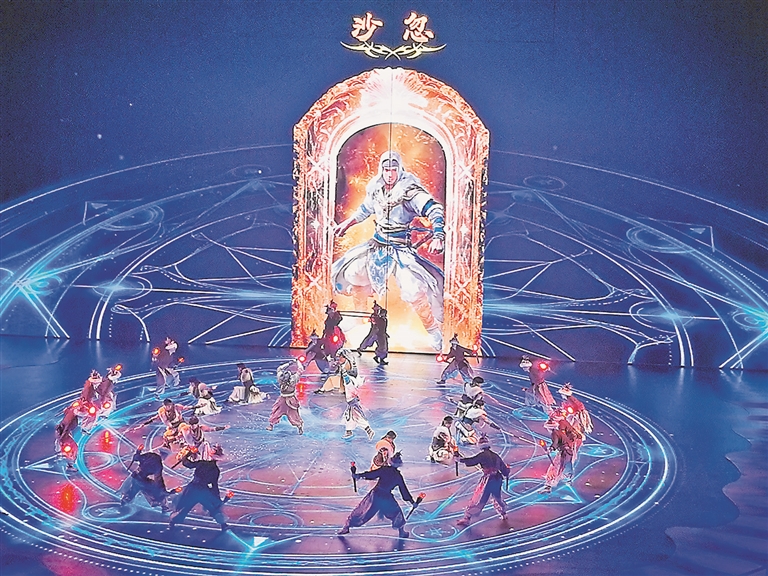 演出以走进“王的战车游戏世界”为切口,带大家走进了一幕幕震撼、精彩的奇幻世界。矩形舞台上,投影与全息影像交织出一幅壮阔画卷;演员陆续登场,地屏上演绎着北方部落勇士成长蜕变的历程,高空中舞者们以灵动的舞姿拉开一个个史诗级巨幕。场景不断变化、剧情跌宕起伏,让很多观众直呼“过瘾”。