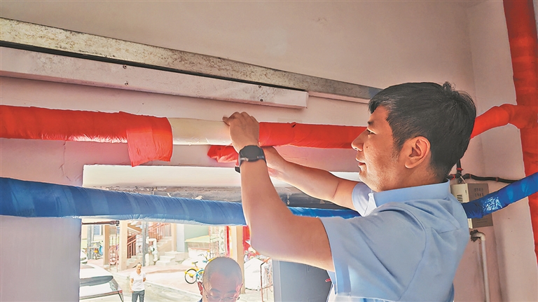 哈投集团太平房产公司承担着道外区616万平方米的供热任务,供热辖区中老旧小区居多,楼梯间内的供热公共管线有的缺少保温层,管线在冬季供热中热量消耗较快,会对居民家室温产生一定影响。“如果在公共管线外面加上保温层,室内温度就会有提升。”上个供热期结束后,太平房产公司工作人员在走访时听取了居民们的意见。6月30日,工作人员开始对红河一街区、新乐小区居民楼道供热管线加装保温层。
