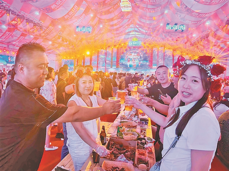 这场以啤酒为名的夏日盛宴也吸引了王先生一家。“我平时不咋喝啤酒,但是带着家人来这里逛一逛也非常嗨。好看的、好吃的、好玩的、好逛的,太多了!”王先生说,作为哈尔滨人,他特别自豪,因为在啤酒节现场不仅自己和家人都玩嗨了,也切身感受到了哈尔滨旅游的日新月异和发展变化,“我们冰城夏都,真的是从一季火热变成了四季精彩”。