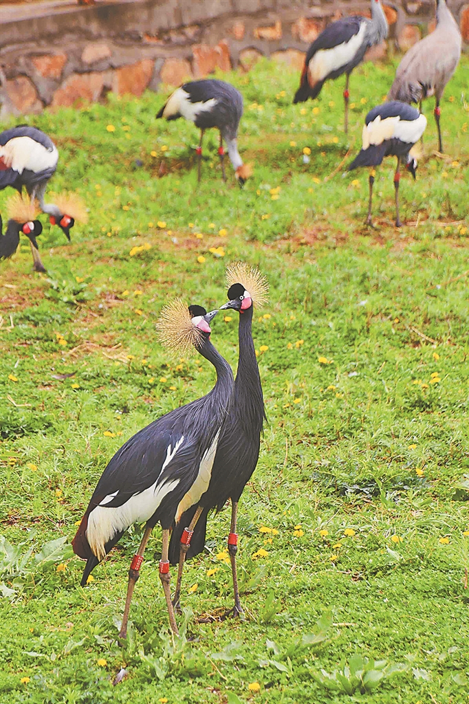生活在鹤苑的西非冠鹤“卡莫”和“祖里”也是一对恩爱夫妻,每年5-8月是它们的繁殖期,这段时间里,西非冠鹤们会成群结队地一起举行“舞会”。“卡莫”和“祖里”在“舞会”上总是最耀眼的存在,它们身姿轻盈,跳出的舞蹈优美动人,是冠鹤中的歌舞明星,曼妙的舞姿让浪漫的节日更有情调。