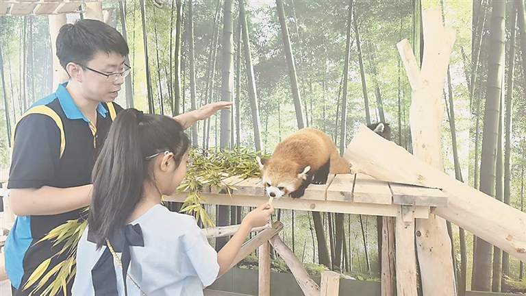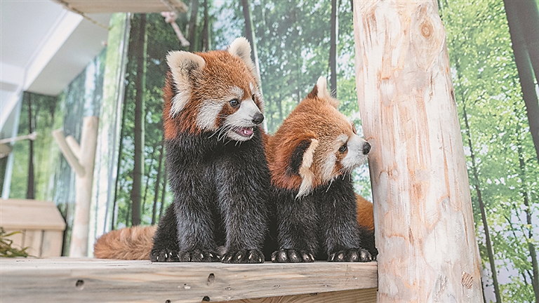 小熊猫是国家二级保护动物,野外种群数量不足万只,比大熊猫还要濒危。保育员团队为它们精心准备食物,专门从四川空运新鲜竹子并搭配多种营养餐食,并定期进行身体检查,确保它们健康成长。