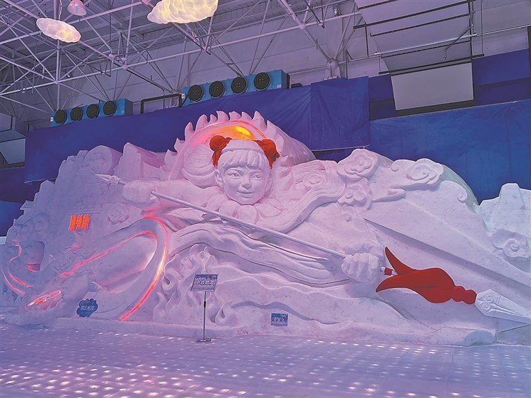 作为哈尔滨这座城市的又一个明星“打卡点”,太阳岛冰雪艺术馆以雪雕艺术为呈现核心,占地5000平方米,用雪量达8000立方米。馆内设有雪源初启区、雪瀑幻光区、瓷韵雪墨区、龙马华章区、冰雪逐梦区和山海幻境区六大主题区域,通过光影技术营造虚实相生的冰雪幻境。