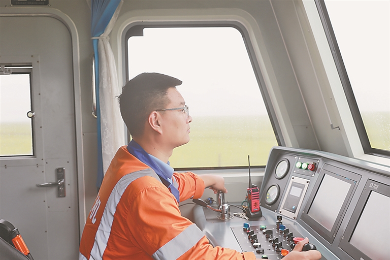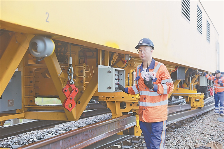 如今,新换轨车配备了钢轨收放装置、顶升装置和形同“机械手臂”的钢轨吊钳。操作员只需在操作室内操控抓取,“机械臂”便可稳稳抓取钢轨,精准送入换轨装置。“人员只需要控制操纵杆,人力节省了三分之一,更省劲儿,也更安全。”刘善军强调。