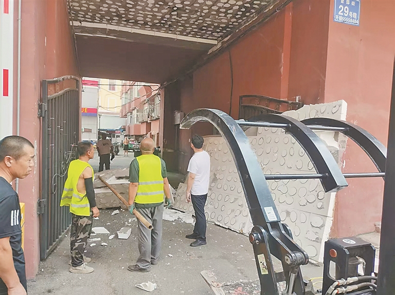 生活报讯 (记者于海霞) 随着最后一段开裂的苯板落地,哈市南岗区营部街29号院的李阿姨长舒了一口气:“这下出门可以放心了!”7月3日晚至4日早晨,一场“安全守护战”在革新街道上演,从发现险情到解决问题,仅用了不到10小时。