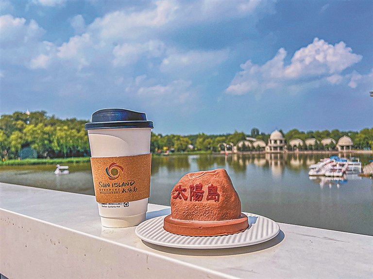 除了美食街上的多种小吃,来太阳岛还能品尝文创冷饮店的冰激凌,感受夏日限定惊喜,各式冰激凌口味丰富多样,一口下去冰爽清甜,燥热一扫而空。游客还可到水阁云天二楼的咖啡屋,松软的文创蛋糕搭配醇厚咖啡酱,一边品尝美食一边欣赏太阳湖美景,惬意又舒服。