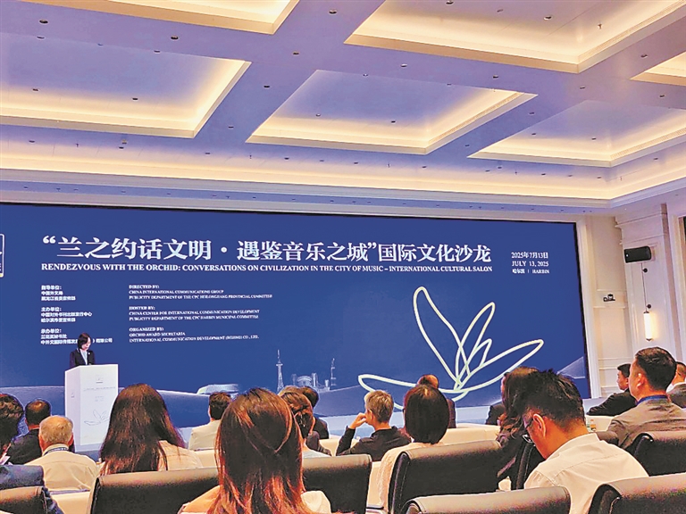 生活报讯 (记者张立 文/摄) 伴着悠扬的乐曲,13日,作为第二届兰花奖“走读中国”参访活动的重要内容,“兰之约话文明·遇鉴音乐之城”国际文化沙龙在哈尔滨开启对话。来自英国、巴基斯坦、德国等国的文化学者、音乐家等与中国嘉宾齐聚,展开了一场跨越文明的对话,大家愿做全球文明倡议的践行者,推动不同文明交流互鉴,愿与“尔滨”携手,积极打造文明交流互鉴示范地,为向世界展现可信、可爱、可敬的中国形象作出更大贡献。