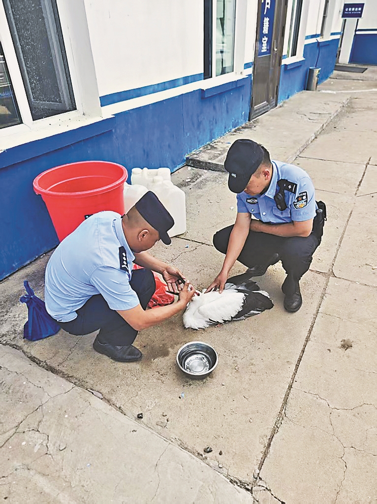 生活报讯 (记者史天一) 近日,哈尔滨市公安局双城分局民警在巡逻工作中接连发现并救助两只国家一级保护动物东方白鹳。