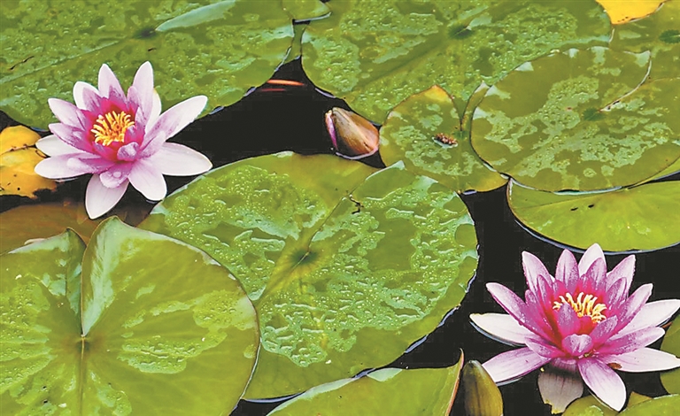 16日,香坊区黛秀湖公园人工湖内,一池睡莲悄然绽放。白如雪,粉似霞,朵朵莲花、田田莲叶与蓝天白云相映衬,绘就一幅夏日美景图,引得市民漫步池边流连忘返。这里的荷花池宽阔无比,沿着栈道漫步,一侧是绚丽绽放的睡莲,另一侧则是形态各异的荷花,有的含苞待放,有的盛开如盘,美不胜收。