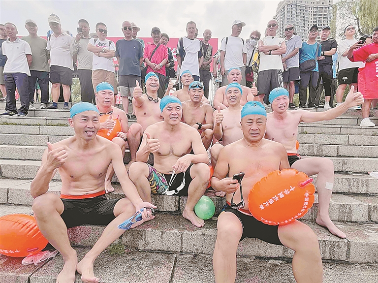 记者了解到,自去年开始,哈尔滨市金英铁人三项运动俱乐部组织队员参加十华里长游比赛。“之前都是个人参赛,去年开始我们组了一个十人队,一个五人队,还有女子的五人队和三人队。去年我们获得了第五名,非常开心。”唐兴文说。