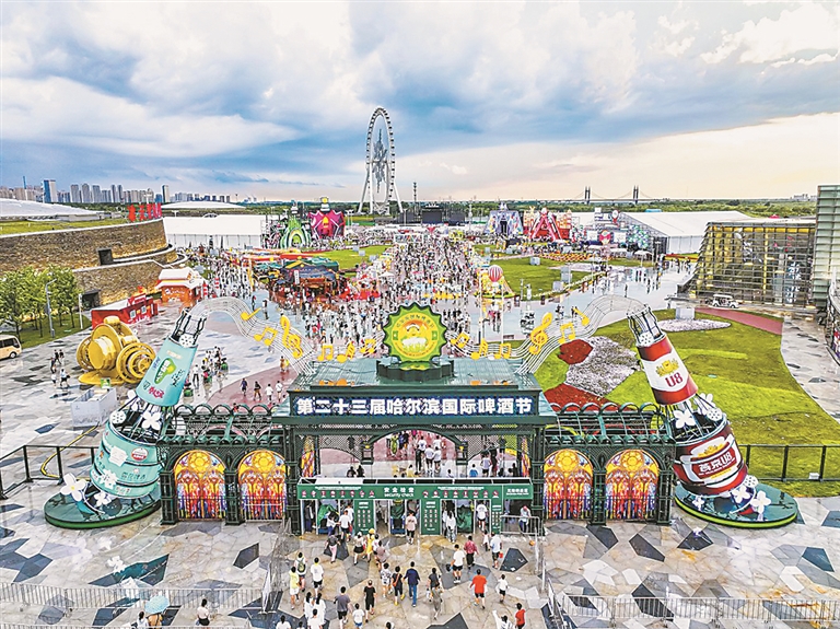 本届啤酒节以“举杯邀世界 醉美哈尔滨”为主题,是场地面积最大、国际性最强、业态最丰富的一届啤酒节,通过“啤酒+音乐+美食+文化+休闲娱乐+文化共享”的多元模式,在40万平方米的场地内构建起多维度体验矩阵,让市民、游客在美酒佳酿和精彩互动中,感受“冰城夏都”的如火热情与活力脉动。