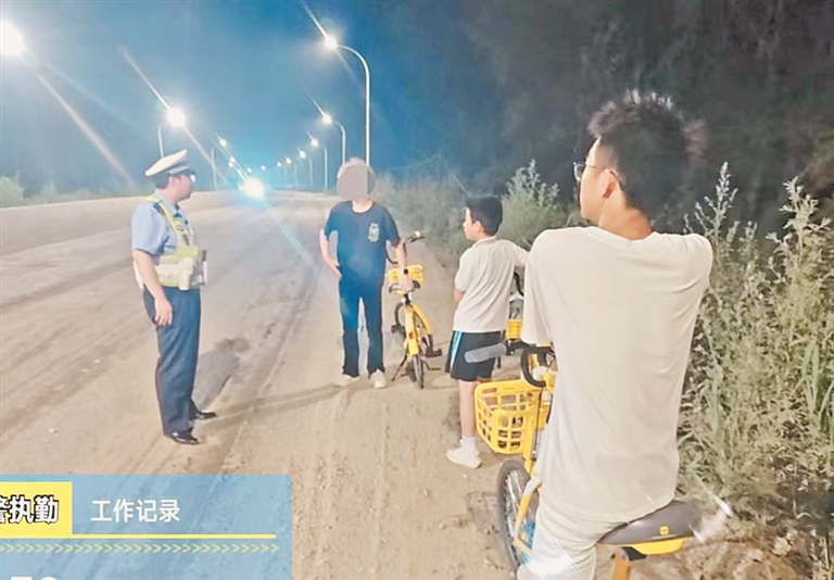 “孩子别怕,警车护送你们回家!”7月23日凌晨,交管松北大队盛天翔、扆鹏程巡逻至万宝大道时,发现三名少年正吃力地蹬着共享单车。该路段夜间货车流量达每小时400台次,少年们的反光背心已被汗水浸透。民警当即拦停询问,得知16岁的小林带着两个弟弟已骑行15公里。民警一边联系家长,一边打开警灯在单车后方缓行护卫。3公里护送路上,闪烁的蓝红警灯划破夜色,将孩子们安全交到焦急的父母手中。“以后再不敢让孩子深夜出门了,多亏你们眼睛亮!”林父感激道。