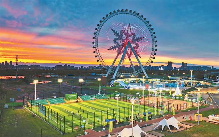 “足球场环境优美,场地条件好,交通也便利,我有时间就和朋友过来踢一场。不踢球的家人、朋友可以在看台观赛,给我们加油打气。”作为足球场的常客,市民芦先生提起这里也是交口称赞:“特别是晚上,摩天轮点亮了,在球场下面合影特别美,我们都说这里是最美足球场。踢完球再去啤酒节转转,吃点喝点,看看表演,一站式都解决了。”