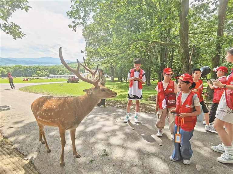 研学活动组织单位的工作人员邢雯说:“大美龙江,风光无限。到大森林里,与动物做朋友,带着课本来旅行,是他们选择皇家鹿苑的重要理由。”