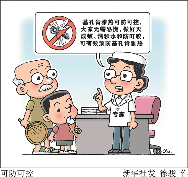 何剑峰等专家表示,基孔肯雅热通过伊蚊传播,而伊蚊是依靠积水繁殖后代的,预防基孔肯雅热,关键是灭成蚊、清积水、防叮咬。