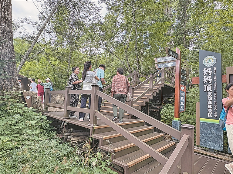 记者了解到,进入暑期,妈妈顶原始森林景区里一直热闹非常。除了来自佳木斯、哈尔滨等近郊游群体外,来自武汉、上海、杭州等地的全国游客也争相赶了过来。来自上海的余先生表示,自己和太太出发前特意做了攻略,对妈妈顶充满了期待。“我们是1号晚上到的,温度太舒服了!早上从宾馆出来,满眼都是绿色,整个景区山、石、水、林、花、草融为一体,雄、险、奇、秀、幽交相辉映。”