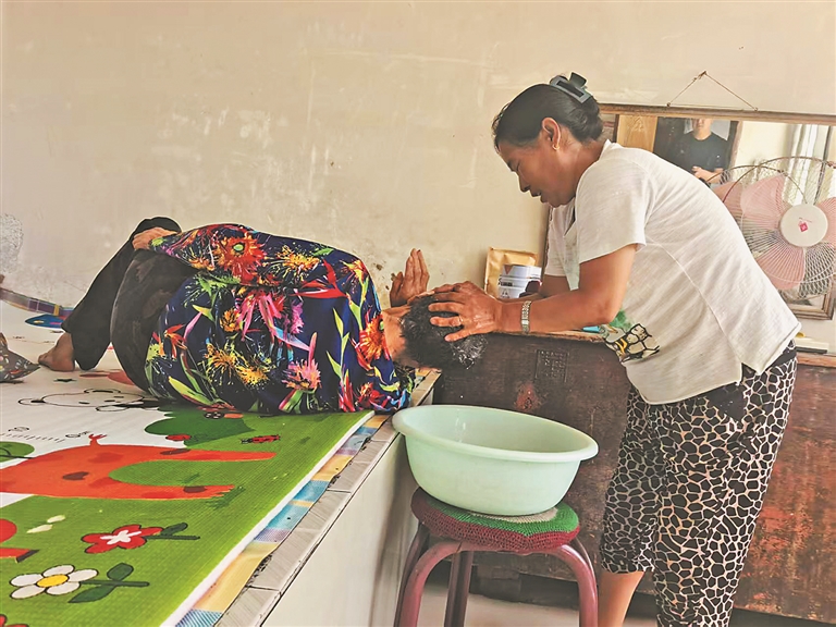 照料奶奶婆七年之后,王丽丽当时64岁的公公又突患脑梗,生活不能自理,瘫痪在床。她需要照料的瘫痪老人由一位变成了两位,担子更重了,但王丽丽顽强地扛了下来。两年后,奶奶婆去世。又过了三年,脑梗又找上了当时69岁的婆婆,婆婆也瘫痪了,王丽丽又承担起了同时照顾公公、婆婆的艰巨任务。“这一伺候,就伺候到六年前公公去世,如今还剩婆婆一人需要照顾。”王丽丽告诉记者。