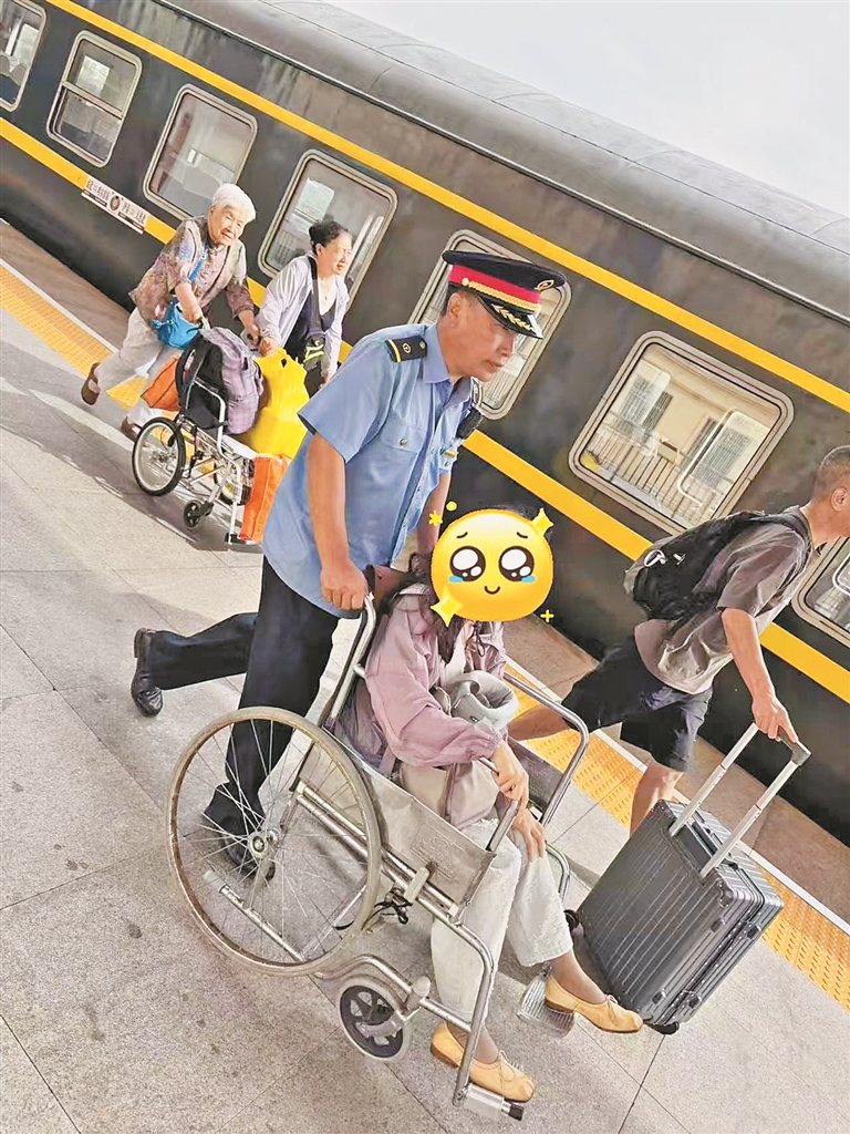 火车穿行于东北的林区,胡女士的同伴尝试通过12306热线申请哈尔滨东站的轮椅服务,但是由于信号断断续续未能成功。当列车员得知这一消息后,当即通过内部系统直接联系哈尔滨东站。当胡女士一行人抵达时,站台工作人员已经推着轮椅,如约静候在车厢门口。