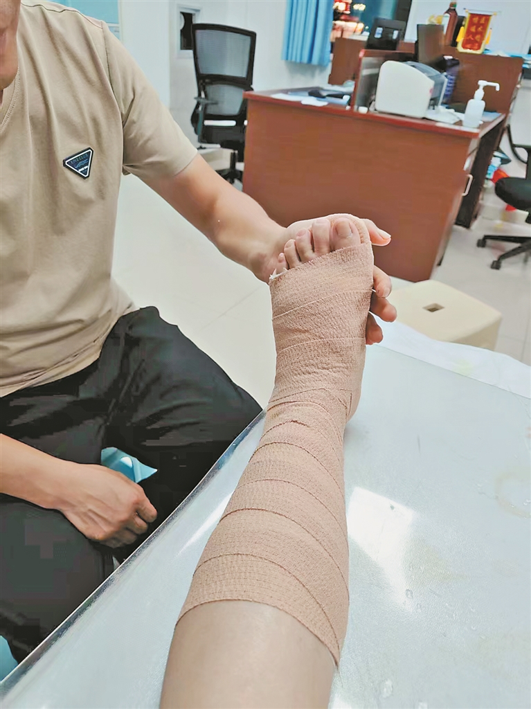 据胡女士介绍,8月9日6时许,她和四名同伴结束了愉快的黑龙江旅游行程,即将踏上返程之旅。在等待接站车的过程中突发意外,她的左脚不慎踏空、跌倒在地。剧痛瞬间袭来,脚踝肿起了大包。此刻,距返程列车K7128次从伊春站发车已不足一小时。同伴们匆忙搀扶她上车,在药店购买了冰袋与云南白药,并进行了紧急处理,随后一行五人直奔火车站……