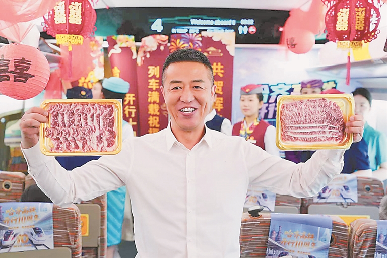 齐齐哈尔市商务局副局长李贵军介绍,哈齐高铁作为我国最北端高寒高铁,以“高铁速度”重塑了龙江交通版图,连接起哈尔滨、大庆、齐齐哈尔三大城市,构建哈大齐“一小时经济圈”。哈齐高铁开通十年来,齐齐哈尔市招商引资项目和投资金额年均增长20%以上。形成了食品加工、高端制造两大优势产业集群。“截至2024年年末,全国齐齐哈尔烤肉门店达2.4万家,约占全国烤肉市场的12%,较2020年增长了5倍,产业规模从不足50亿元提升至超300亿元。这一跨越式发展,离不开高铁的支持。”