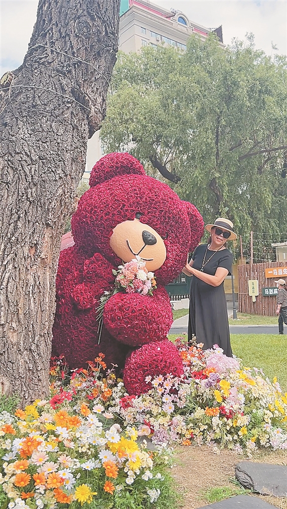 巨型玫瑰熊无疑是街区最受欢迎的打卡点之一,孩子们围着这个巨型装置嬉笑打闹,年轻人则在镜头前定格美好瞬间。