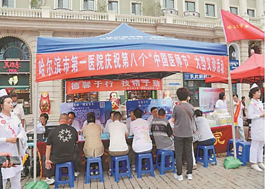 生活报讯 (见习记者李晓航 记者王秋实) 8月19日,在第八个中国医师节来临之际,哈尔滨市卫生健康委紧扣“德馨于行,技精于勤”主题转化为为民服务的暖心举措,组织14家市属医疗机构专家在中央大街开展大型义诊活动。活动涵盖综合诊疗、专科服务、健康科普与文化展示四大板块。医务工作者以精湛医术与拳拳爱心服务市民,用专业行动守护百姓健康,献上了一份温暖的节日礼物。