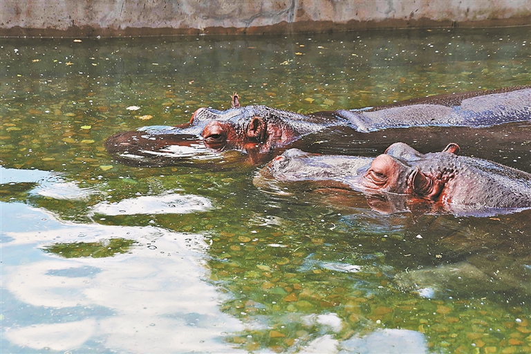 河马“清仔”和“嘟嘟”是动物园里的重量级伴侣,从相处到生宝宝,一直伉俪情深。在陆地上它们同吃同睡、形影不离,在水中也一起纳凉、游泳。七夕节上午,它们甚至游成了爱心形状。