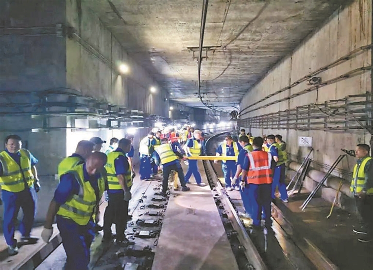 生活报讯 (记者仲亮) 8月30日,哈尔滨地铁集团运营一中心电务车间工务专业与中铁一局委外维保单位组建联合攻坚团队,完成太平桥车辆段入段线小半径曲线换轨作业。