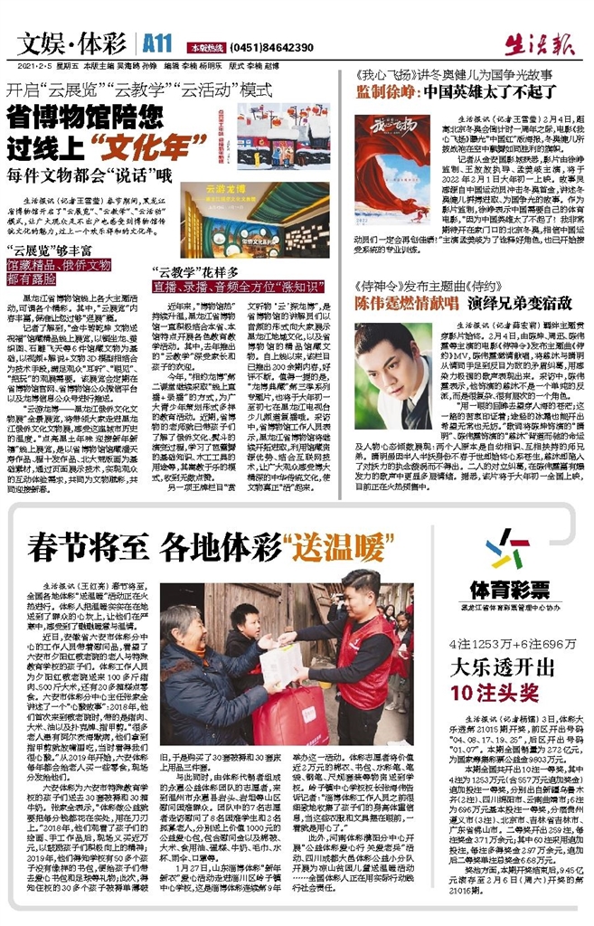生活报4日讯 (记者张立) 4日,哈尔滨市政府新闻办公室举行疫情防控第25场新闻发布会,现场哈尔滨市委宣传部副部长于丽针对哈尔滨就地过年服务保障工作的安排部署进行了介绍。从2月4日(小年)开始一直持续到元宵佳节,哈尔滨市将