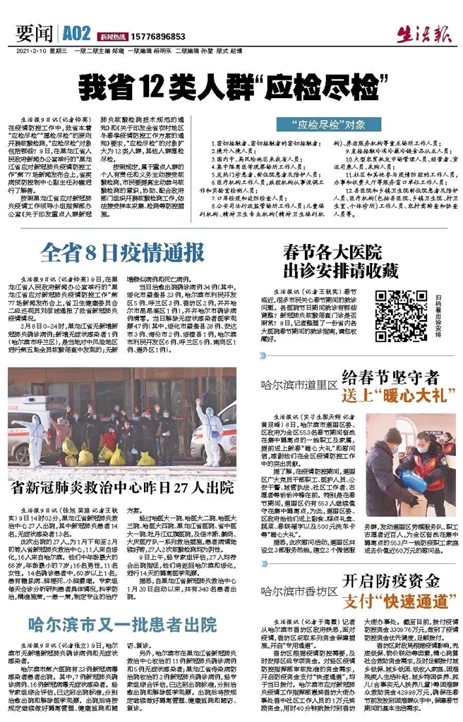 根据春节放假的有关规定,本报2021年2月11日-17日休刊,2月18日正常出刊。节日期间,生活报官方微信、微博、头条号、企鹅号及龙头新闻精彩不断,请您持续关注。如果您遇到突发事、新鲜事、烦心事,请在生活报官微和龙头新闻客