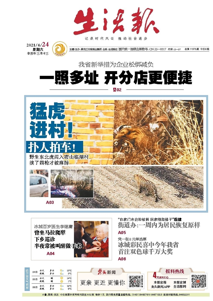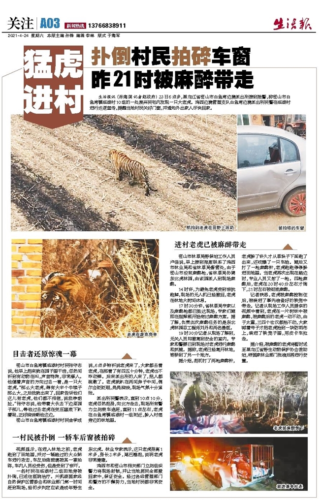 野生东北虎闯入密山临湖村 挨了四枪才被麻醉