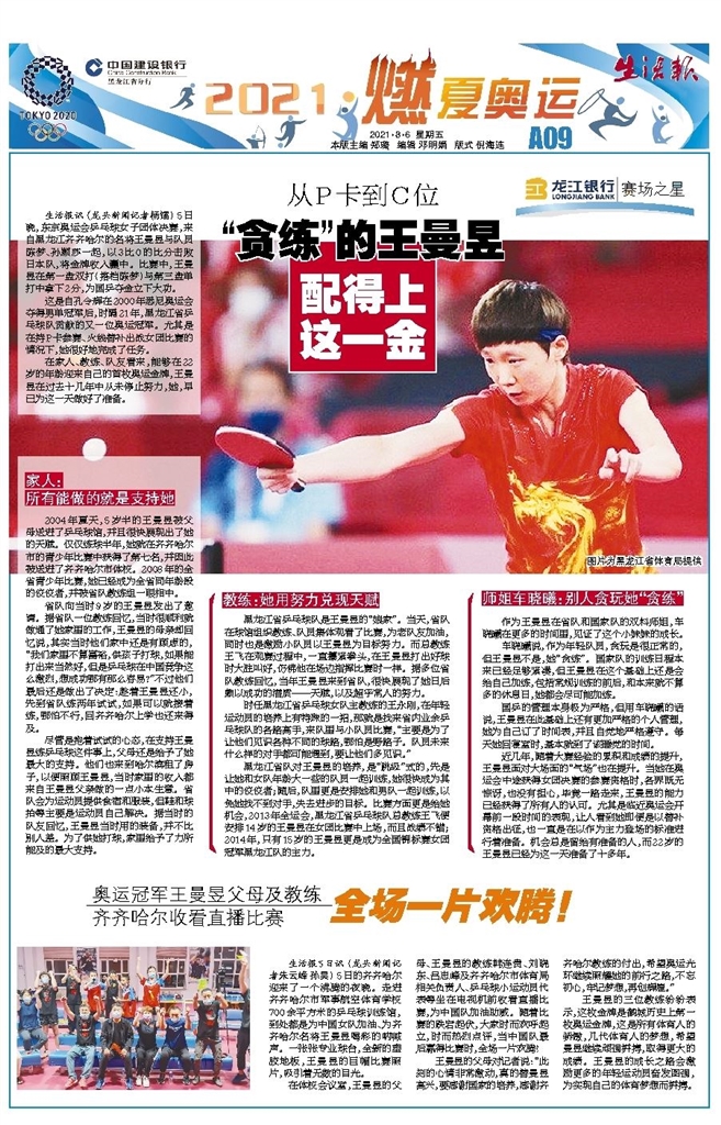 欣闻我省运动员王曼昱与队友不畏强手、沉着冷静、团结拼搏、精诚合作,以完美的发挥、出色的表现,勇夺乒乓球女子团体比赛金牌,为祖国赢得了荣誉。作为