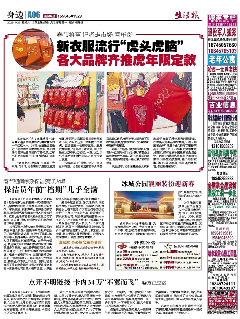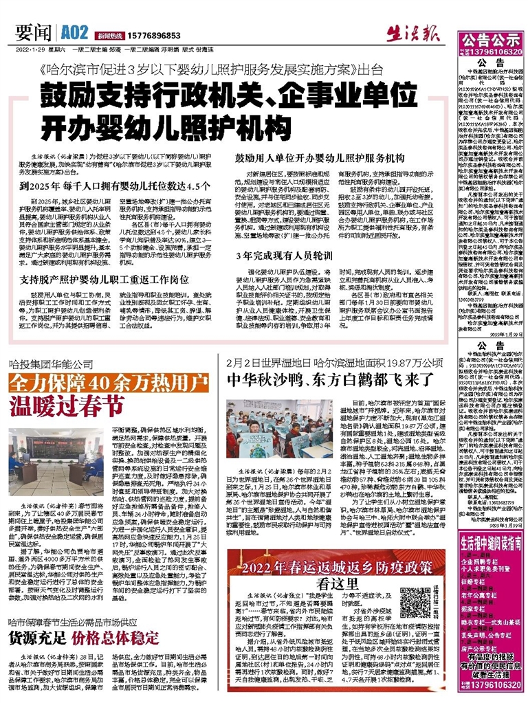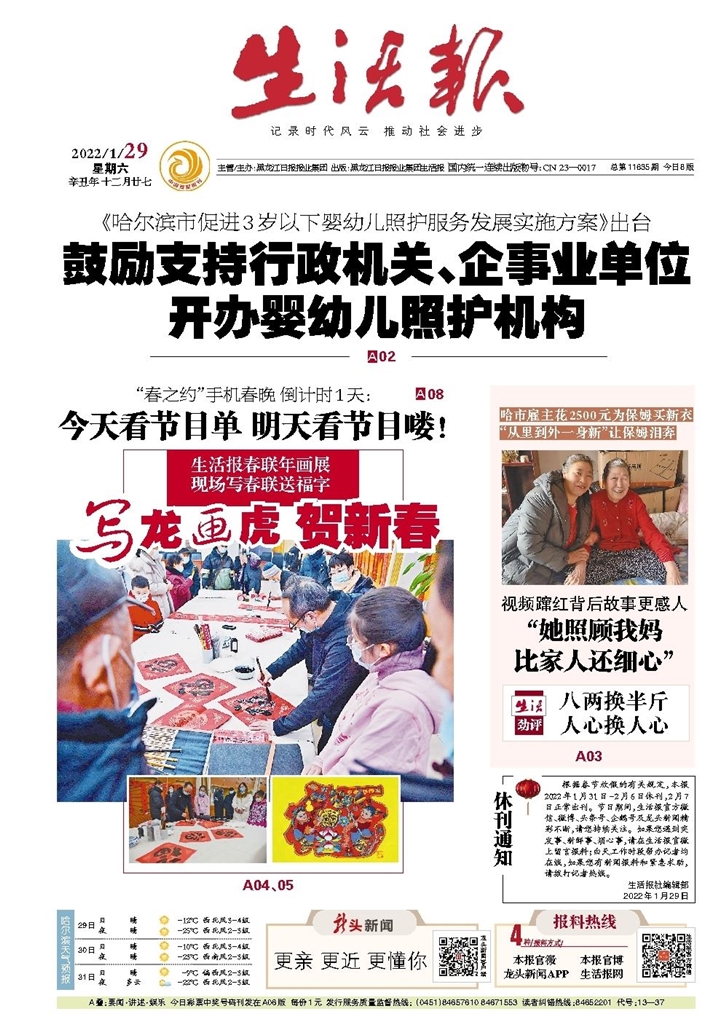 根据春节放假的有关规定,本报2022年1月31日-2月6日休刊,2月7日正常出刊。节日期间,生活报官方微信、微博、头条号、企鹅号及龙头新闻精彩不断,请您持续关注。如果您遇到突发事、新鲜事、烦心事,请在生活报官微上留言报料;