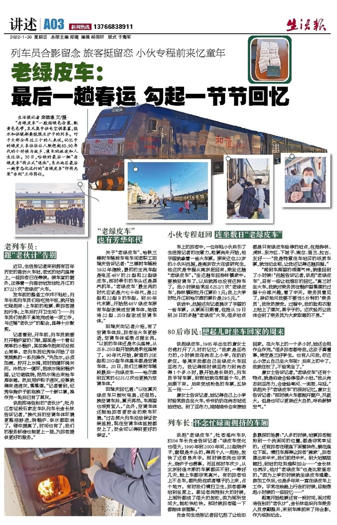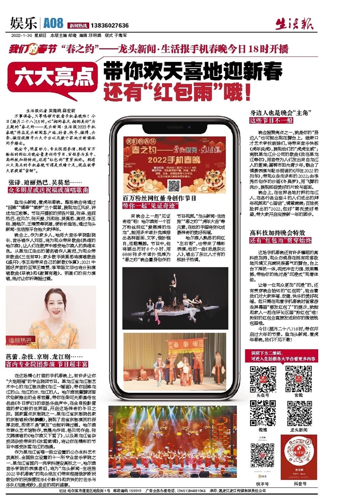 根据春节放假的有关规定,本报2022年1月31日-2月6日休刊,2月7日正常出刊。节日期间,生活报官方微信、微博、头条号、企鹅号及龙头新闻精彩不断,请您持续关注。如果您遇到突发事、新鲜事、烦心事,请在生活报官微上留言报料;