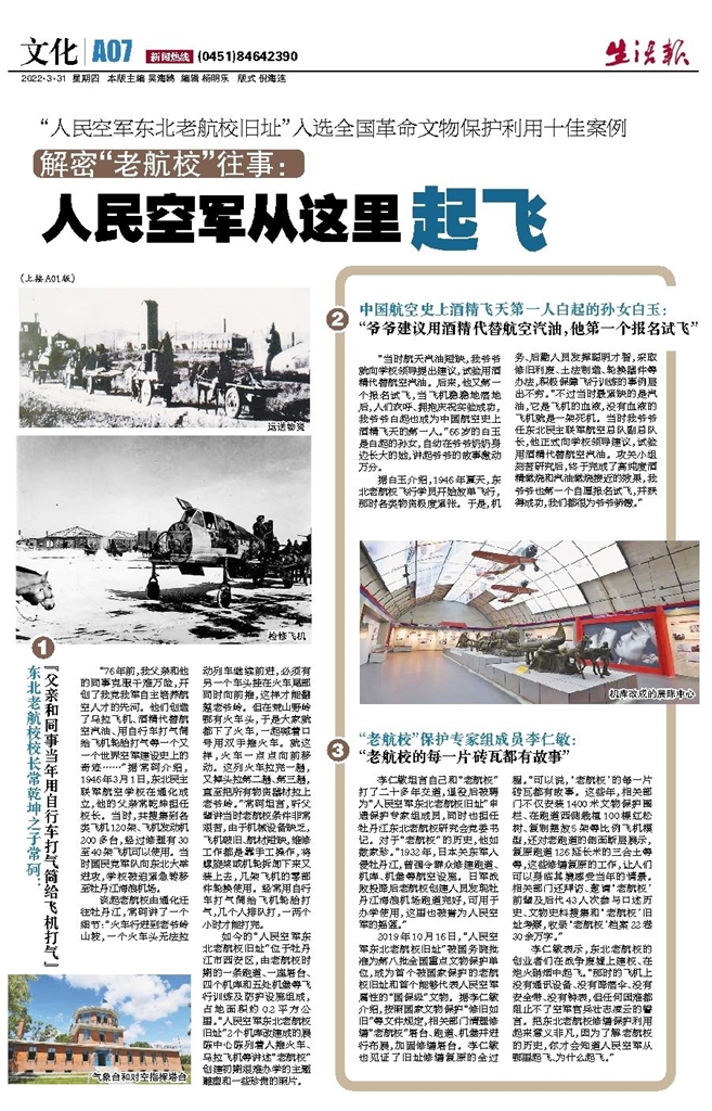 最近,东北老航校研究会会长常砢特别高兴。在24日举行的第三届(2021)全国革命文物保护利用十佳案例宣传推介活动专家终评会上,“人民空军东北老航校旧址”入选全国革命文物保护利