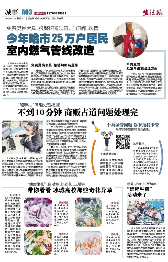 生活报讯 (记者李威兵) 24日,在哈市道里区迎宾小区,中庆燃气公司工作人员开始进入居民家中,对室内燃气管线进行改造。生活报记者了解到,中庆燃气公司负责的哈市主城区区域内,共计划改造室内燃气管线59.5万户,计划2022年