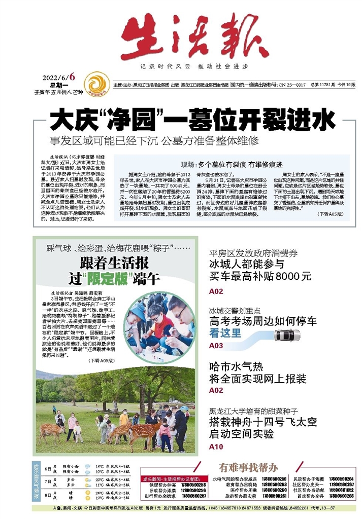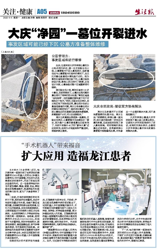 生活报讯 (记者郭登攀 时继凯文/摄) 近日,大庆市周女士给记者打来电话称,她母亲去世后于2013年安葬于大庆市净园公墓。最近家人扫墓时发现,母亲的墓位出现开裂、进水的现象,而且里面的骨灰盒已经被水泡开。大庆市净园公墓称只