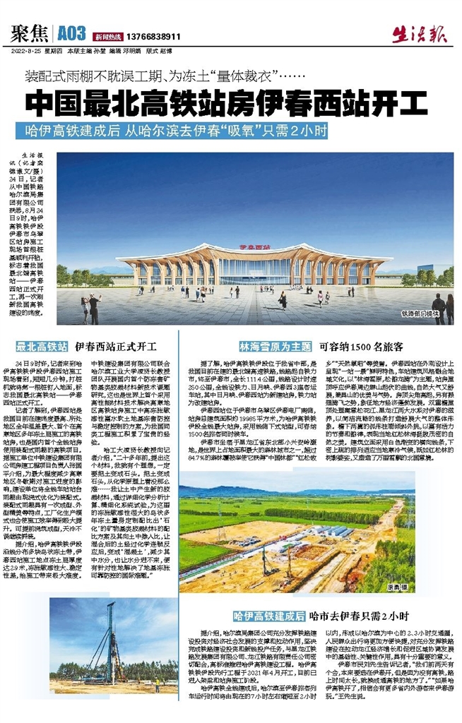 哈伊高铁建成后 从哈尔滨去伊春“吸氧”只需2小时