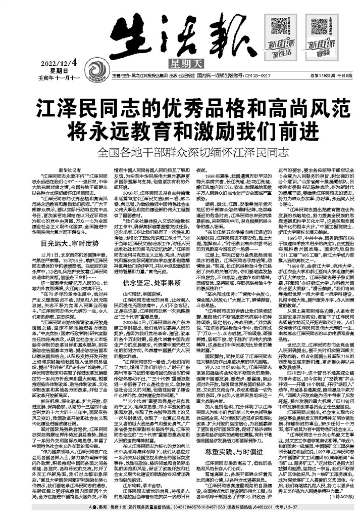 “江泽民同志永垂不朽”“江泽民同志永远活在我们心中”……连日来,中华大地充满悲痛之情,全国各地干部群众以各种方式深切缅怀江泽民同志。