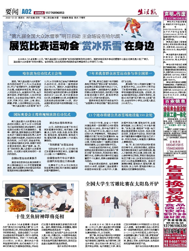 开展冰上龙舟、冰壶、雪地足球等11个冰雪比赛活动