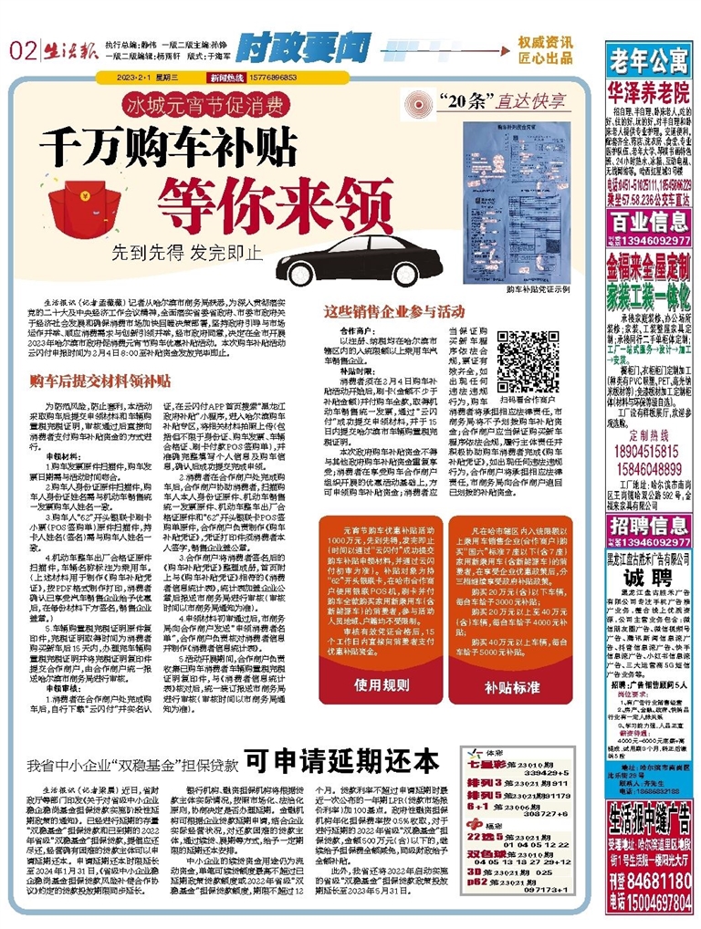 购买20万元(含)以下车辆,每台车给予3000元补贴