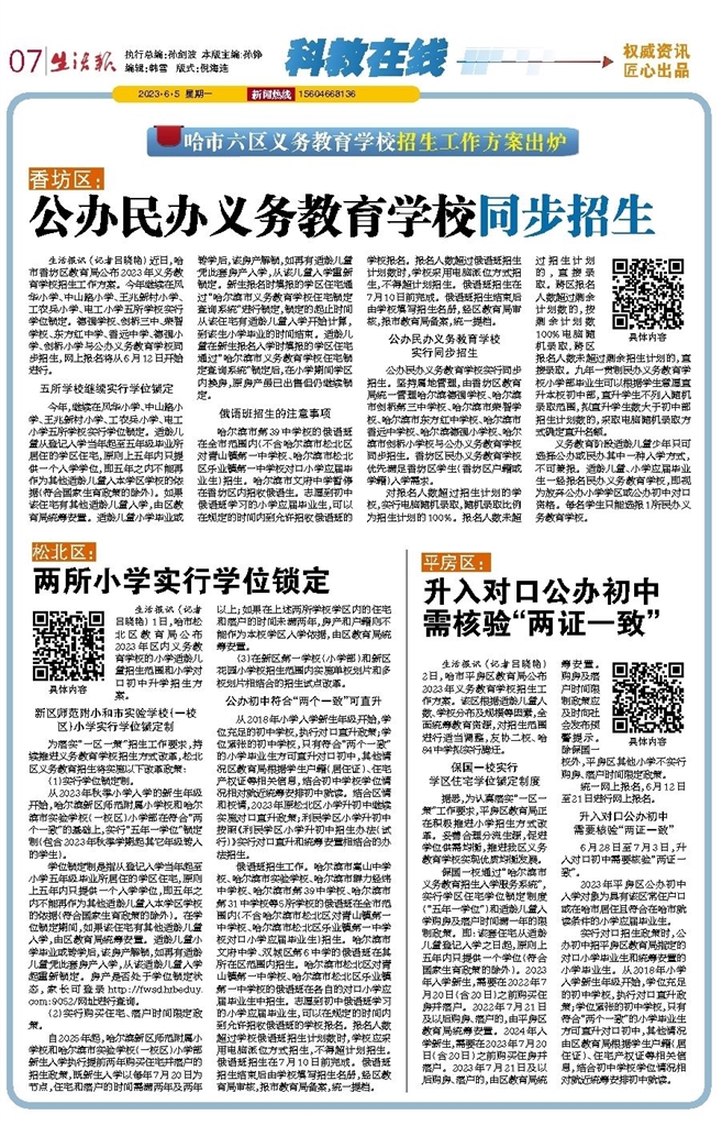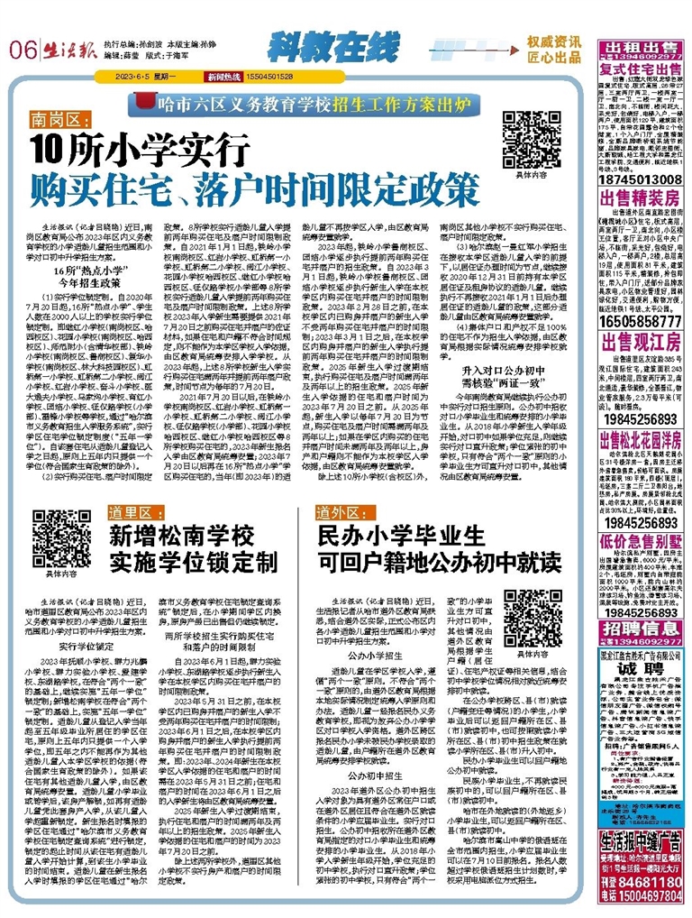 生活报讯 (记者吕晓艳) 近日,南岗区教育局公布2023年区内义务教育学校的小学适龄儿童招生范围和小学对口初中升学招生方案。