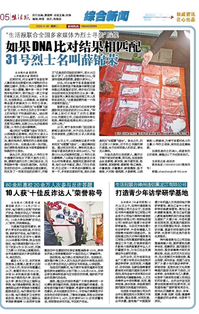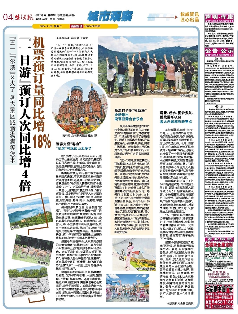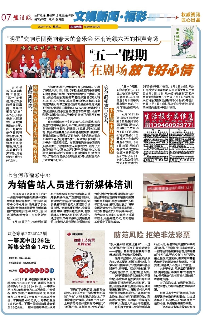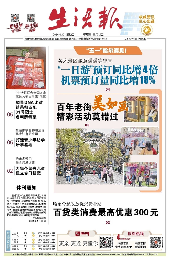 根据“五一”放假的有关规定,本报2024年5月2日至5日休刊,6日正常出刊。节日期间,生活报官方微信、微博、头条号、企鹅号及龙头新闻精彩不停,请持续关注。如果您遇到突发事、新鲜事、烦心事,请在生活报官微上留言报料;白天工作