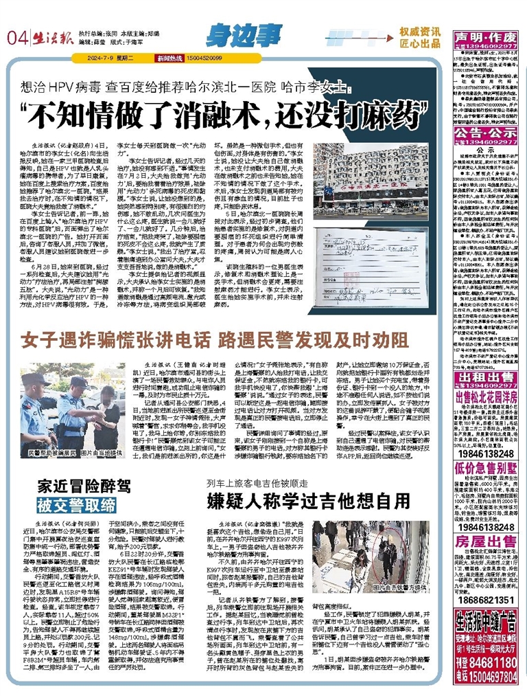 生活报讯 (王健南 记者时继凯) 近日,哈尔滨市通河县的街头上演了一场民警救助群众,与电诈人员进行时间赛跑,成功阻止电信诈骗的一幕,及时为市民止损十万元。