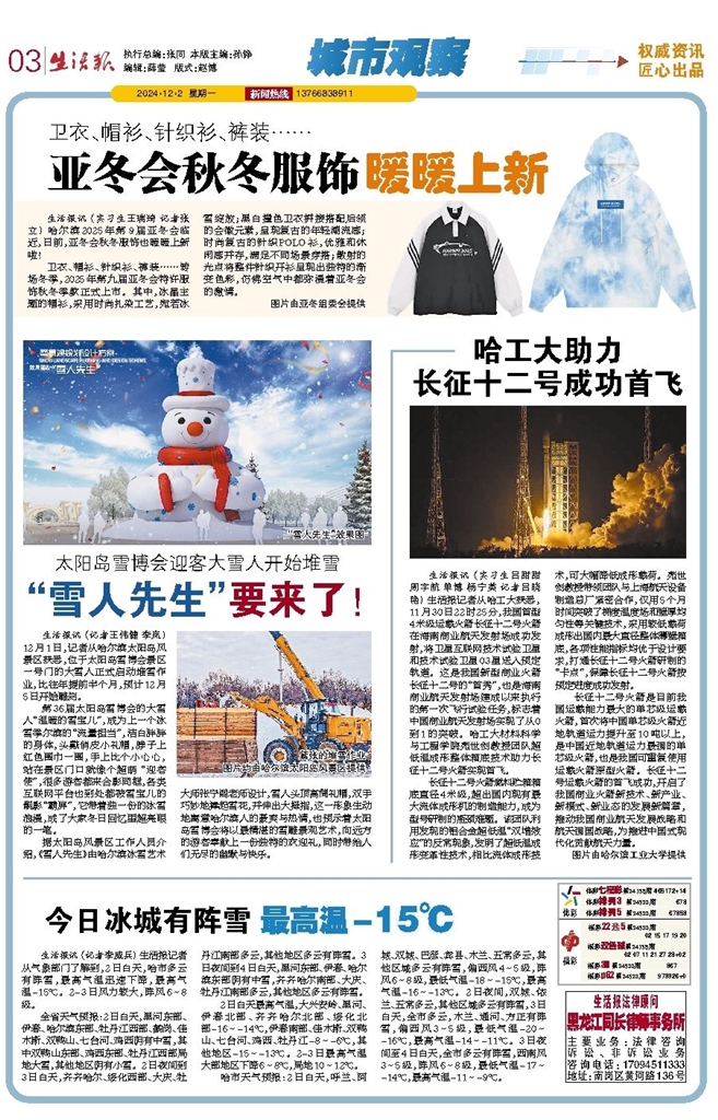 生活报讯 (实习生王瑞琦 记者张立) 哈尔滨2025年第9届亚冬会临近,日前,亚冬会秋冬服饰也暖暖上新啦!