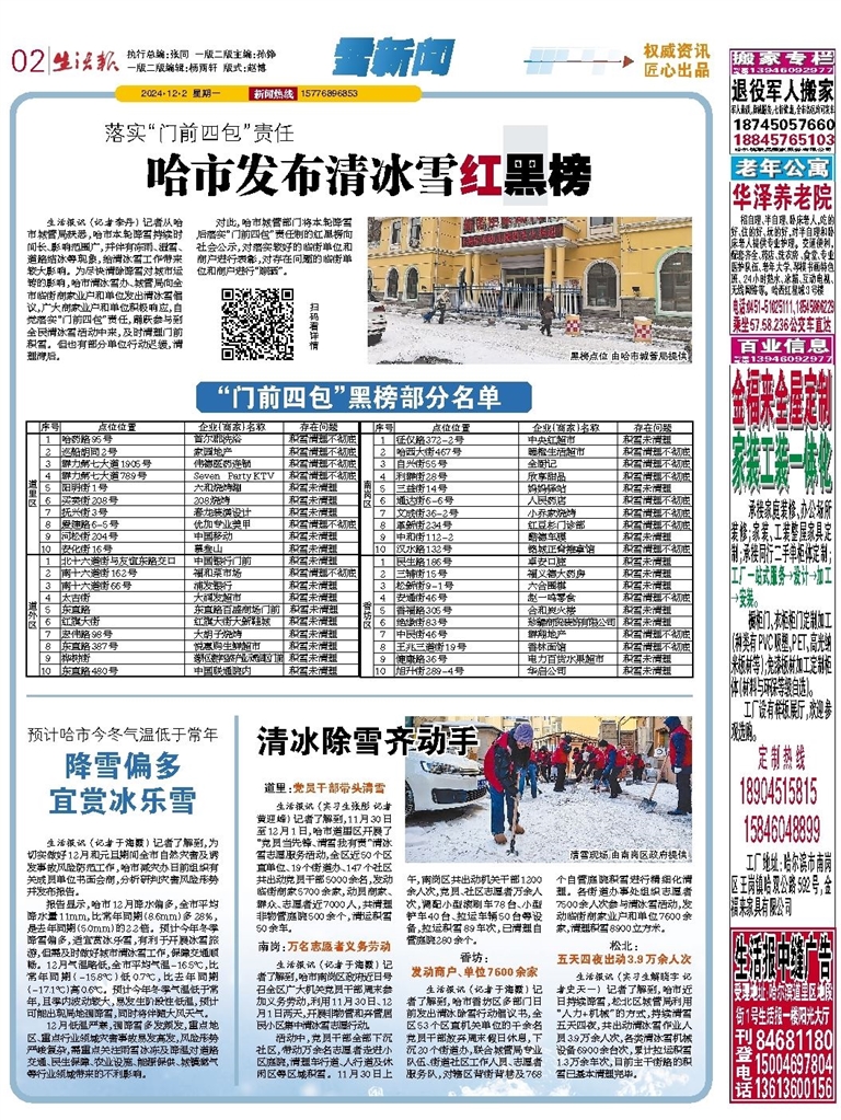 生活报讯 (记者李威兵) 生活报记者从气象部门了解到,2日白天,哈市多云有阵雪,最高气温迅速下降,最高气温-15℃。2-3日风力较大,阵风6~8级。