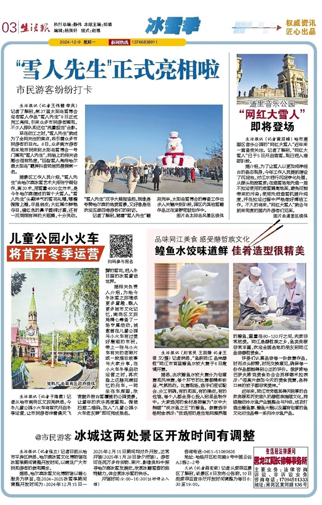 生活报讯 (记者李威兵) 记者从省气象台获悉,哈市未来三天气温先升后降,昼夜温差大,需根据气温变化适时调整衣物;9日大气扩散气象条件较差,易出现低能见度天气;降雪天气易产生道路结冰、积雪。