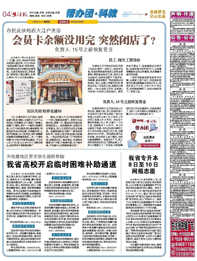 生活报2日讯 (李佳轶 记者张立) 为依法严厉打击破坏野生动植物资源违法犯罪行为,保护野生动植物资源,维护生态安全,2日,哈尔滨市林业和草原局向社会公开举报监督电话和救助电话。