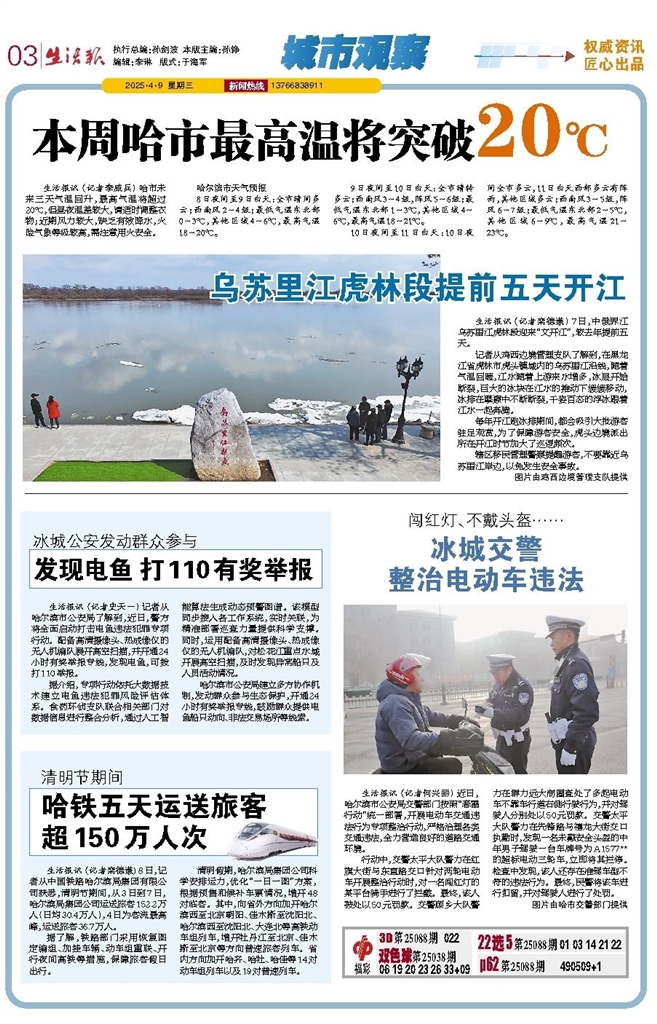 生活报讯 (记者何兴丽) 近日,哈尔滨市公安局交警部门按照“春雷行动”统一部署,开展电动车交通违法行为专项整治行动,严格治理各类交通违法,全力营造良好的道路交通环境。
