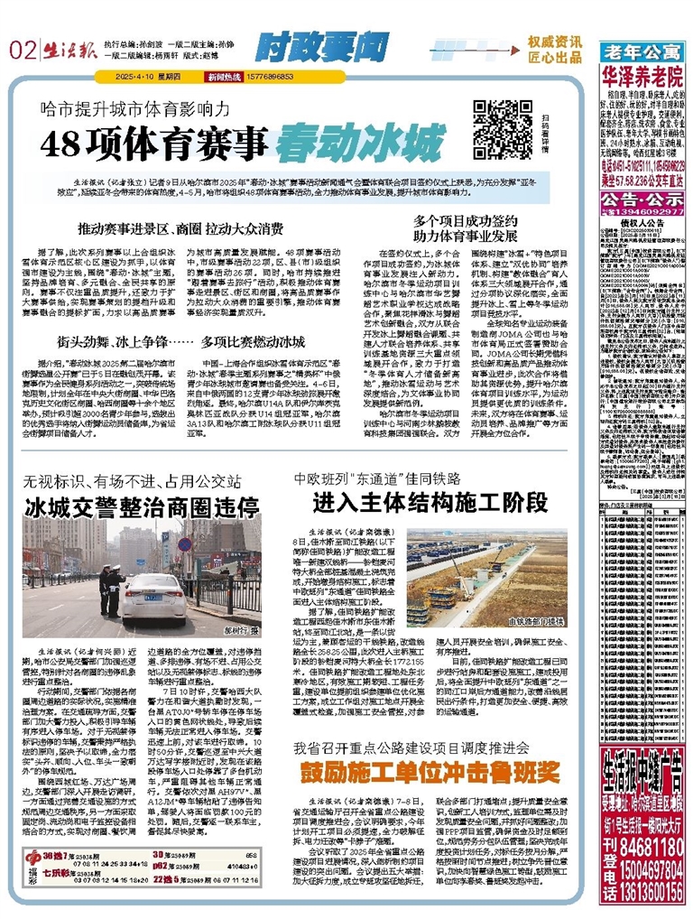 生活报讯 (记者张立) 记者9日从哈尔滨市2025年“春动·冰城”赛事活动新闻通气会暨体育联合项目签约仪式上获悉,为充分发挥“亚冬效应”,延续亚冬会带来的体育热度,4-5月,哈市将组织48项体育赛事活动,全力推动体育事业发