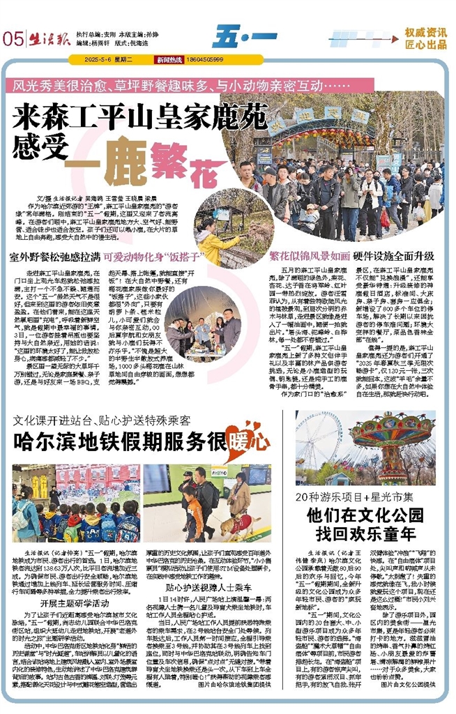 作为哈尔滨近郊游的“王牌”,森工平山皇家鹿苑的“游客缘”常年满格。刚结束的“五一”假期,这里又迎来了客流高峰。在游客们眼中,森工平山皇家鹿苑地方大、空气